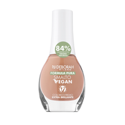 De Deborah Milano Pura Vegan Nagellak collectie biedt een reeks prachtige kleuren en onmisbare verzorgingsproducten die volledig vegan en zorgvuldig samengesteld zijn. De formule is vrij van schadelijke stoffen en bevat voornamelijk natuurlijke ingrediënten. Dankzij de plantaardige harsen en verzorgende oliën hecht de lak uitstekend, droogt deze mooi strak op en geeft hij een glanzend, egaal resultaat. Een bewuste keuze voor wie veilige, verzorgende cosmetica wil zonder in te leveren op kwaliteit.