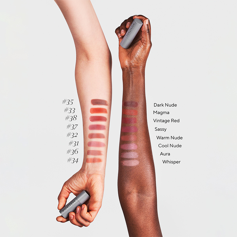 Gebruik royaal voor een klassieke, matte liplook. Breng de lippenstift lichtjes aan en dep met de vingers voor een trendy lip-stain effect. Werk af met je favoriete lipgloss voor extra glans en dimensie. Ook geschikt voor gebruik op oogleden en wangen voor een stijlvolle, monochrome make-uplook.