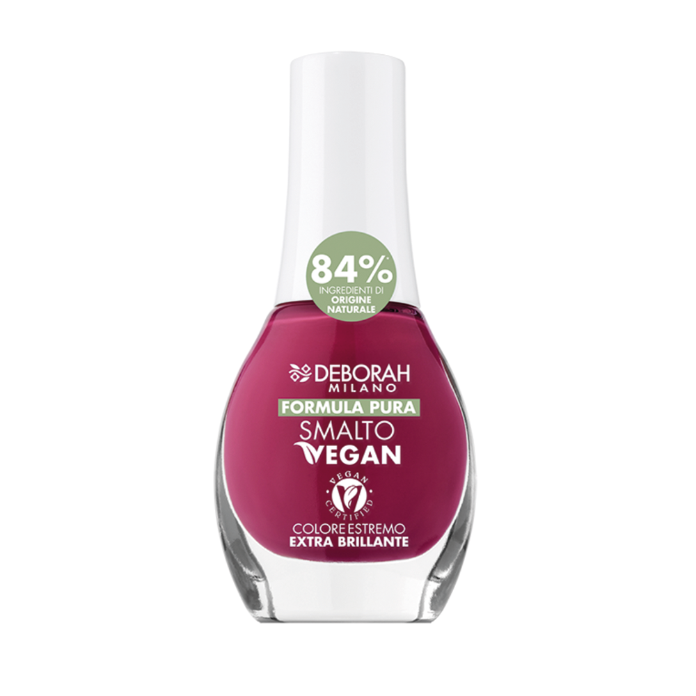De Deborah Milano Pura Vegan Nagellak collectie biedt een reeks prachtige kleuren en onmisbare verzorgingsproducten die volledig vegan en zorgvuldig samengesteld zijn. De formule is vrij van schadelijke stoffen en bevat voornamelijk natuurlijke ingrediënten. Dankzij de plantaardige harsen en verzorgende oliën hecht de lak uitstekend, droogt deze mooi strak op en geeft hij een glanzend, egaal resultaat. Een bewuste keuze voor wie veilige, verzorgende cosmetica wil zonder in te leveren op kwaliteit.