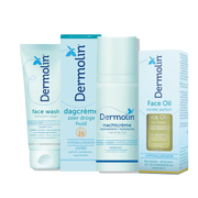 - Dermolin Face Oil (30 ml) intens verzachtende olie die lipiden aanvult en de huid comfortabeler laat aanvoelen.