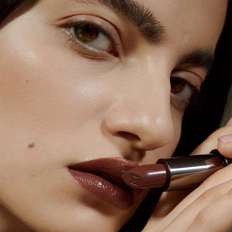 Gebruik royaal voor een klassieke, matte liplook. Breng de lippenstift lichtjes aan en dep met de vingers voor een trendy lip-stain effect. Werk af met je favoriete lipgloss voor extra glans en dimensie. Ook geschikt voor gebruik op oogleden en wangen voor een stijlvolle, monochrome make-uplook.