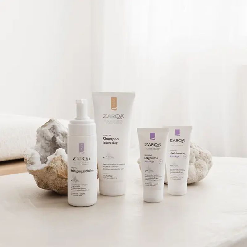 ZARQA Dagcrème Anti-Age beschermt, hydrateert en versterkt de huid op natuurlijke wijze. De huid voelt na gebruik zacht, soepel en verzorgd aan en behoudt haar jeugdige uitstraling.