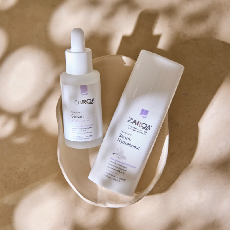 Zarqa Serum Hydraboost verbetert de hydratatie van de huid en geeft de vermoeide huid een directe oppepper. Het milde serum kalmeert en verzacht de gestreste huid direct en stimuleert de aanmaak van collageen. De toevoeging van extra magnesium versterkt de revitaliserende werking. Het serum heeft een hoge concentratie, wordt snel door de huid opgenomen en trekt diep in de huidlagen. Hierdoor kan een dag- of nachtcrème nog beter zijn werk doen. Geschikt voor alle huidtypen, zelfs de meest gevoelige.